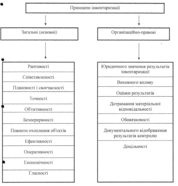 6. При проведені інвентаризації слід дотримуватись наступних її принципів: раптовості, всебічності, повноти охоплення об'єктів, гласності, ефективності, оперативності, економності, об'єктивності, точності, своєчасності і плановості, співставленості, безперервності, а також організаційно-правових.