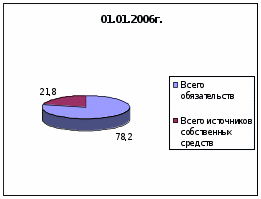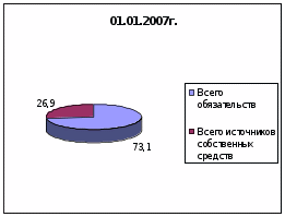 Из рисунка видно, что валюта баланса на 01.01.2005г. составляла 58278 тыс. руб. В 2006г. она продолжает расти, но более быстрыми темпами, чем в прошлом году. Так, ее размер на 01.01.2007г. вырос на 7878 тыс. руб., составив 171052 тыс. руб. в сравнении с 2005г.