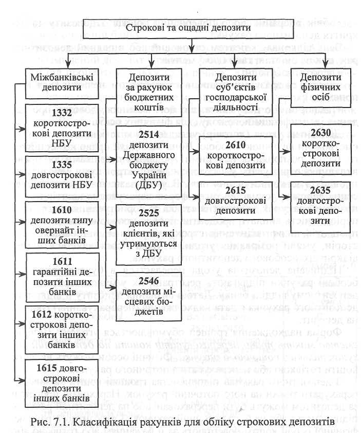 Класифікація в плані рахунків строкових, включаючи ощадні, депозитних рахунків наведена нижче (рис. 7.1).
