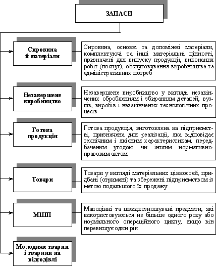 Методологічні основи формування в бухгалтерському обліку інформації про запаси і розкриття її у фінансовій звітності конкретизуються безпосередньо Положенням (стандартом) бухгалтерського обліку 9 "Запаси". Під запасами розуміють активи, які: