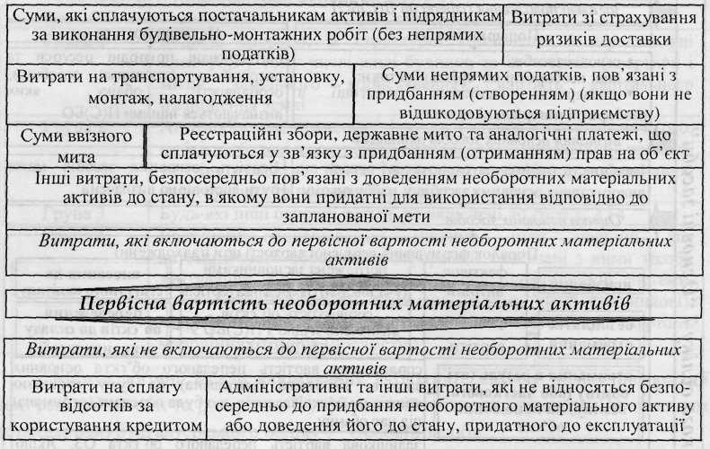 Рис. 1.1 - Витрати, які формують первісну вартість необоротних матеріальних активів