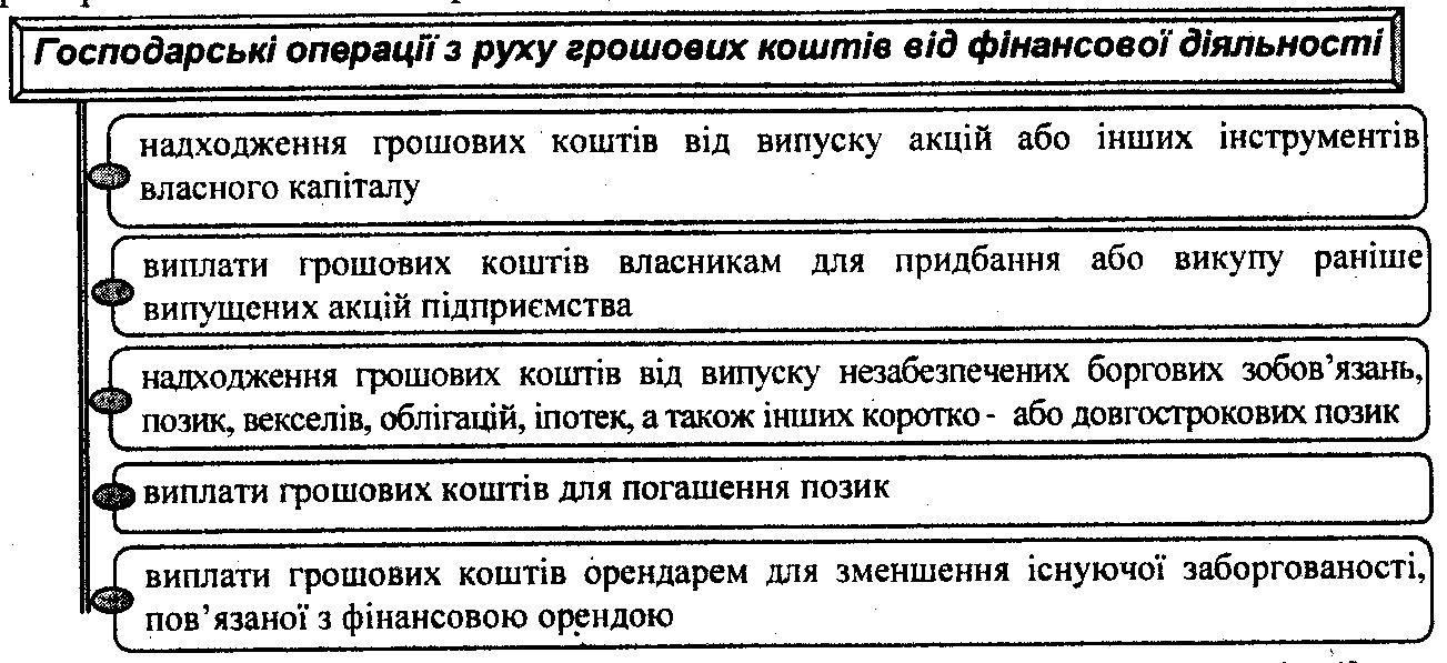 Рис. 2.3 Приклади господарських операцій з руху грошових коштів від фінансової діяльності