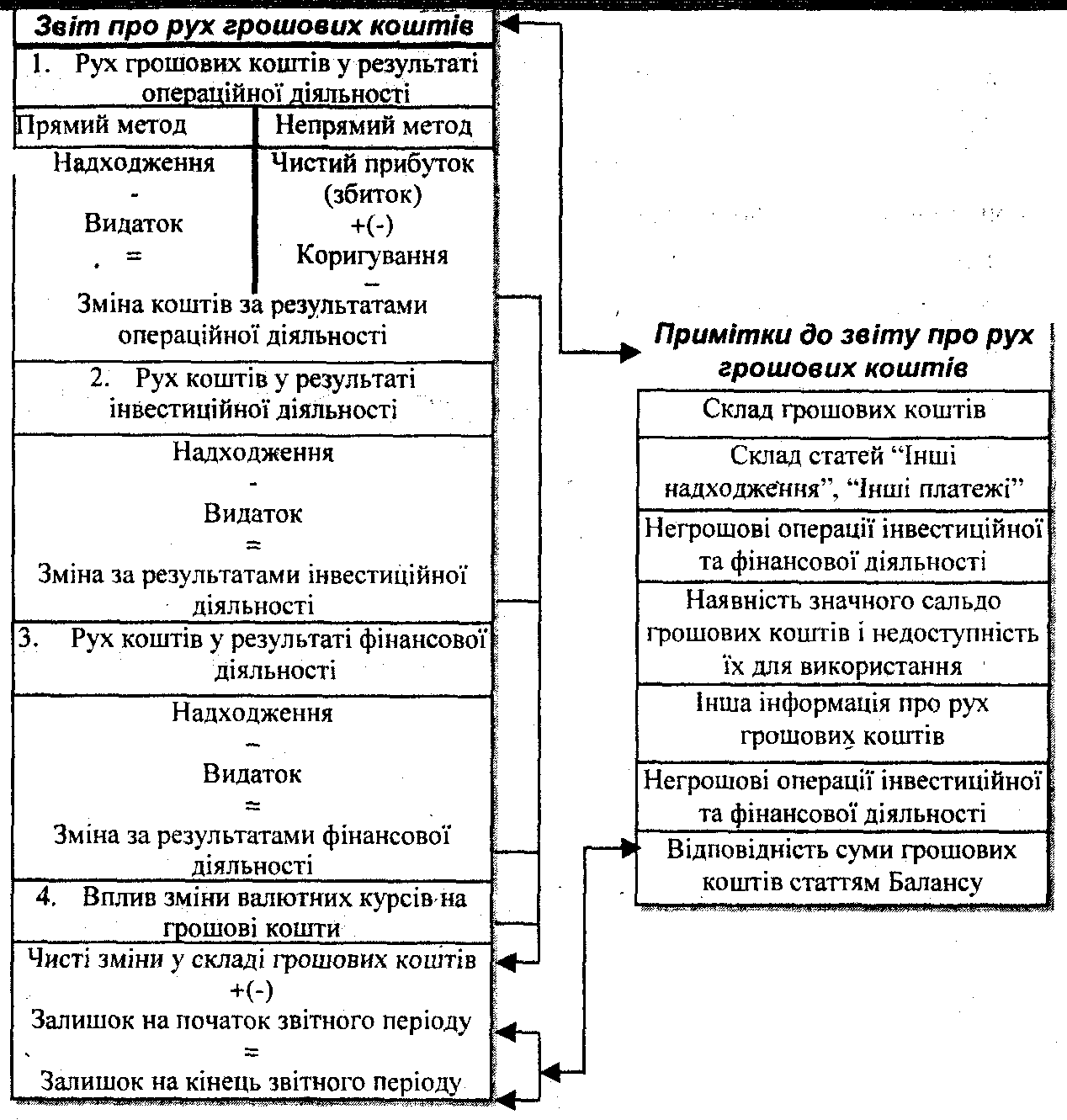 Як вже зазначалось, МСБО 7 визначає структуру звіту про рух грошових коштів за трьома основними сферами діяльності: операційною, інвестиційною та фінансовою.