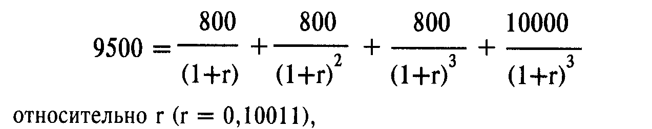 Если мы найдем внутреннюю ставку доходности для облигации по условиям Примера 7, то, решив уравнение