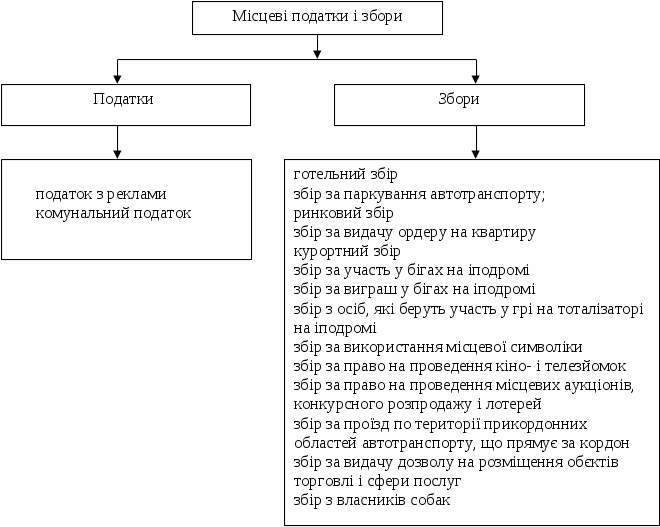 Местные налоги (схема 4) устанавливаются местными советами народных депутатов, их особенность заключается в том, что в отличие от других налогов, действующим законодательством определяются только виды местных налогов и собраний, их предельные размеры, плательщиков и порядок вычисления. Конкретные же виды налогов для каждой местности, их ставки, порядок уплаты устанавливают и определяют органы местного самоуправления в соответствии с перечнем и в пределах установленных предельных размеров.