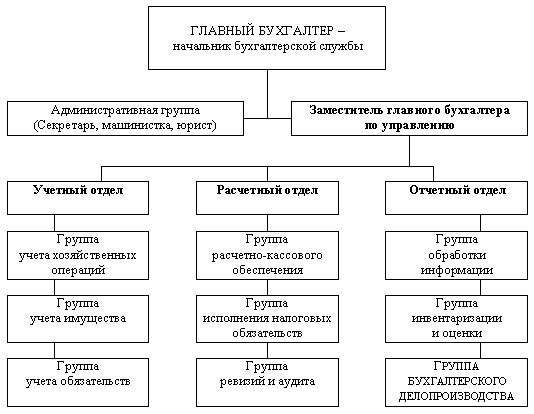 1. Отдел бухгалтерского учёта и отчётности.. Это подразделение, осуществляющее сам бухгалтерский учёт и руководство бухгалтерским учетом, составление отчетности и организацию контрольно-ревизионной работы в организации. Возглавляет данное подразделение главный бухгалтер.