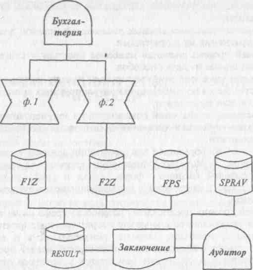 На их основании получают два входных Оперативных файла: F1Z, F2Z. В качестве исходной постоянной информации используются также файл FPS – правила арифметической согласованности и файл SPRAV – справочные данные о содержании правил. Файл RESULT получают на основании перечисленных файлов, причем SPRAV используется аудитором вручную для уточнения или выяснения смысла результатов, выраженных системой.