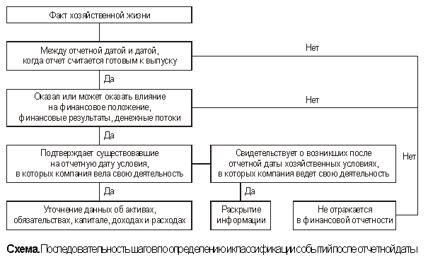 Последовательность шагов по определению и классификации событий после отчетной даты можно представить в виде следующей схемы.