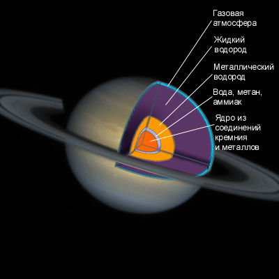 По внутреннему строению и составу Сатурн сильно напоминает Юпитер.
