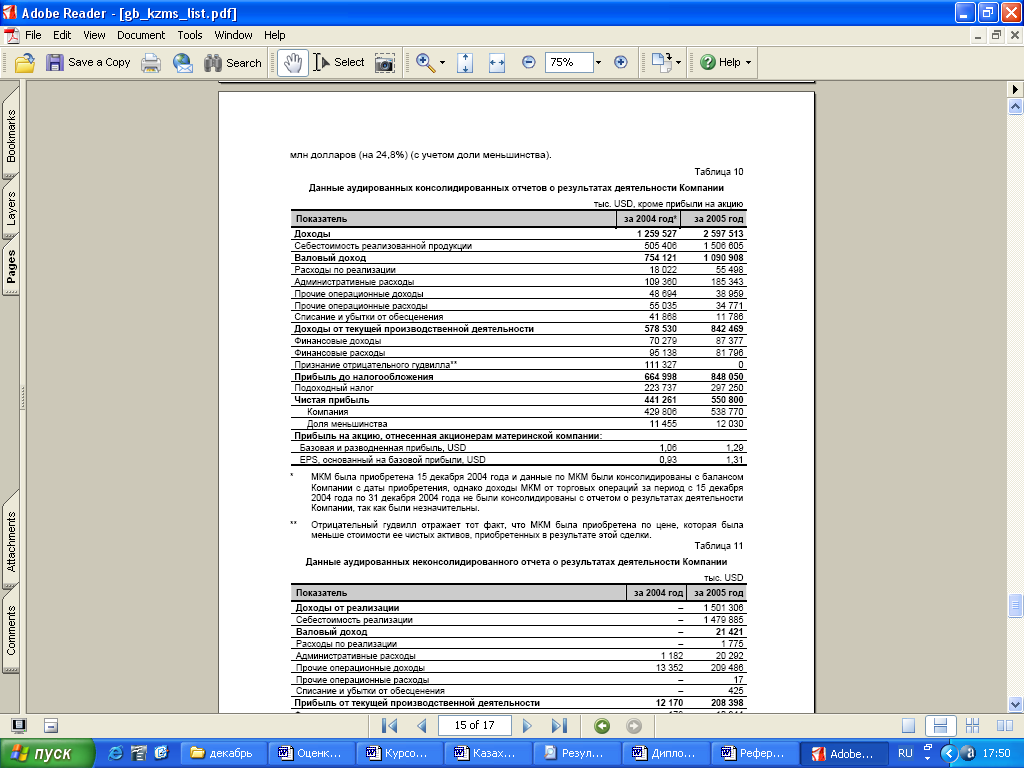 По данным аудированной консолидированной финансовой отчетности Компании в 2007 году ее чистая прибыль составила 550,8 млн долларов и превысила чистую прибыль 2007 года на 109,5 млн долларов (на 24,8%) (с учетом доли меньшинства). (Приложение 3)