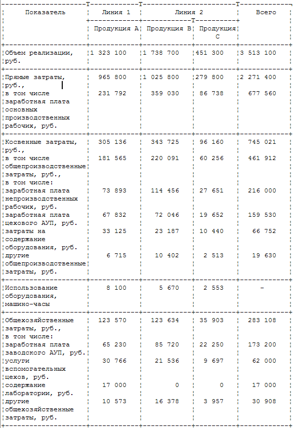 - продукт А выпускается на одной линии, а продукты В и С - на другой;