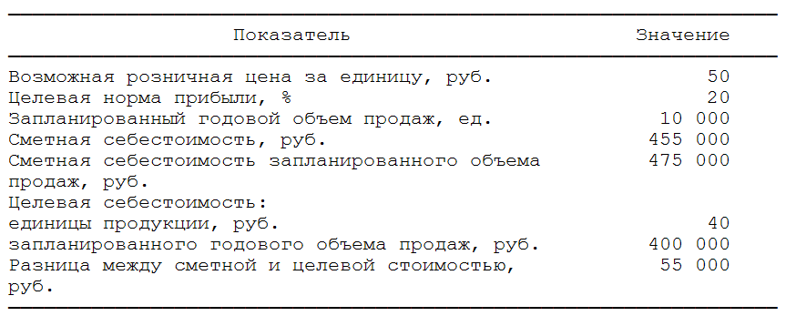 В заключение заметим, что использование системы "таргет-костинг" при калькулировании себестоимости новых (инновационных) продуктов, а также в сфере услуг особенно перспективно. Сутью данного метода является то, что функции маркетинга и проектирования реализуются совместно, а на "выходе" системы получается продукт, имеющий максимально отвечающие ожиданиям потребителей характеристики и наиболее вероятную цену реализации. "Таргет-костинг", в отличие от других методов учета затрат и калькулирования себестоимости, поддерживает стратегию снижения затрат на стадии проектирования продукта, т.е. является стратегическим, а не сугубо операционным инструментом. Будущее современного стратегического менеджмента невозможно без системы целевого управления затратами. Практика работы ведущих компаний мира должна убедить отечественных менеджеров в необходимости использования таргет-костинга на предприятиях. Система организации управленческого учета должна способствовать как управлению затратами в целом, так и использованию метода таргет-костинга в частности.