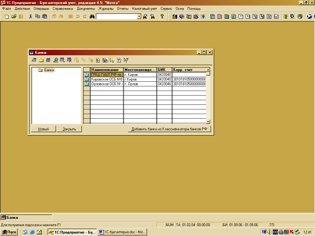 Рисунок 4 – Справочник «Банки»