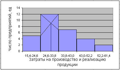 Распределение предприятий по величине затрат на производство и реализацию продукции и прибыли от продаж.