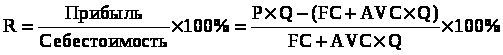 Рентабельность продукции (R) – показатель экономической эффективности реализации продукции на предприятиях – рассчитывается как отношение прибыли к себестоимости изделия по следующей формуле: