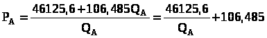 P>A> × Q>A> = 46125,6 + 106,485Q>A>