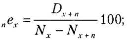 Годовая нетто-ставка (взнос уплачивается в начале страхового года) для лица в возрасте х лет: