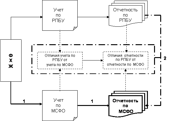 Параллельный учет – это учет, который ведется в иных стандартах (например, МСФО), в отличие от тех, по которым уже ведется учет (например, РПБУ). При этом параллельный учет по МСФО подразумевает отражение фактов хозяйственной жизни в регистрах бухгалтерского учета на основе каждой операции в соответствии с правилами МСФО. Таким образом, каждый факт хозяйственной жизни регистрируется дважды: первый раз в системе учета по РПБУ, второй – по МСФО. При построении параллельного учета показатели финансовой отчетности по МСФО формируются на основе данных бухгалтерского учета по МСФО.