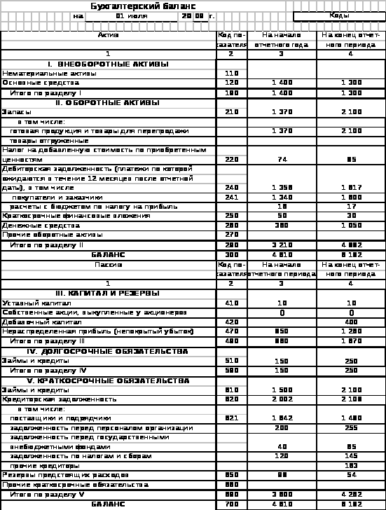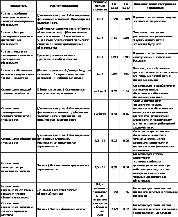 Пример расчета показателей финансового состояния