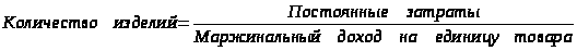 Здесь маржинальный доход на единицу товара (удельный маржинальный доход) – это разница между покупной и продажной ценой товара с учетом всех прочих переменных затрат.