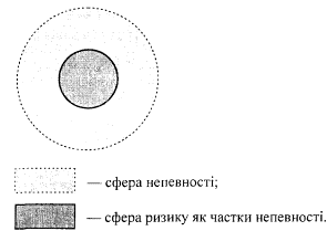 Стан невизначеності може виникнути в кожній ситуації суспільно-економічного характеру, якщо попередньо неможливо виявити причинно-наслідкового зв'язку між основними елементами процесу господарської діяльності чи суспільного буття. Невизначеність породжується незнанням, невідомістю кінцевого результату. Останній може набути одного з трьох можливих значень: виявитися таким, що дорівнює очікуваному, або бути вищим чи нижчим за очікуваний. В умовах невизначеності кінцевий результат можна лише наближено передбачити серед реально можливих значень. Така невизначеність здебільшого зумовлюється суб'єктивним сприйняттям реальних явищ. Поняття ризику, на противагу поняттю невизначеності, має застосування, а тому його зміст потребує об'єктивного визначення. Отже, необхідний перехід від суб'єктивно визначеної непевності до об'єктивного поняття ризику, який базується на непевності. Єдиним способом такого переходу є оцінка непевності кількісними методами і надання їй реальних числових значень. Звідси випливає: ризиком буде визнана лише така невизначеність, яку можна оцінити в кількісних параметрах.