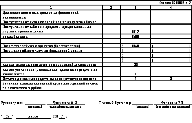 Как показали результаты сравнения данных отчета о движении денежных средств и ф. № 5 (приложение к балансу), имеются расхождения в данных по инвестиционной деятельности. Так, в отчете о движении денежных средств ни по одной строке, характеризующей инвестиционную деятельность ничего не отражено. Тем не менее, анализ ф. № 5 свидетельствует о том, что в течение 2005-2006 гг. предприятие осуществляло операции по приобретению и выбытию основных средств. Величина расхождений была указано в табл. 14 и составила около 110 тыс. руб. за два года. Эти неточности могут также привести к штрафу на сумму 15 тыс. руб.