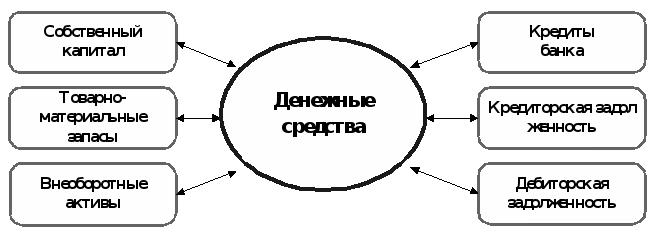 Денежные средства играют важную роль в процессе товарооборота. Сначала деньги переходят в товарную форму, затем , в этой форме они проходят через процесс производства и преобразуются в другой товар, который впоследствии преобразуется вновь в денежную форму.
