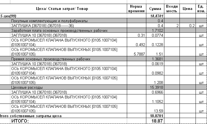 Экономистам цехов - оперативно контролировать себестоимость производимой продукции в разрезе цеха;