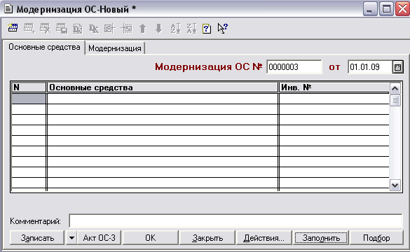 Документы «Модернизация ОС», «Списание ОС» практически аналогичны документам в программе 1С:Предприятие 7.7. Отличием является наличие закладок для налогового учета.