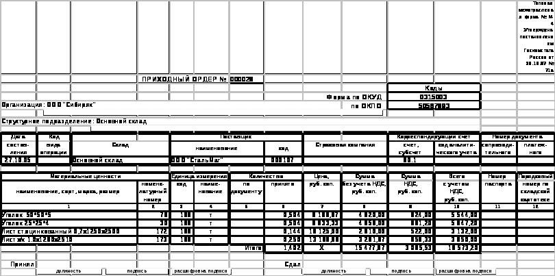 Отходы материалов сдают на склады по приходным накладным или приходным ордерам (типовая форма N М-4) (Приложение 4) с указанием количества. На основании накладных отходы приходуются бухгалтерией на счет материалов. В случае использования отходов на изготовление продукции из ассортимента товаров народного потребления или для каких-либо других целей отпуск оформляется требованием.