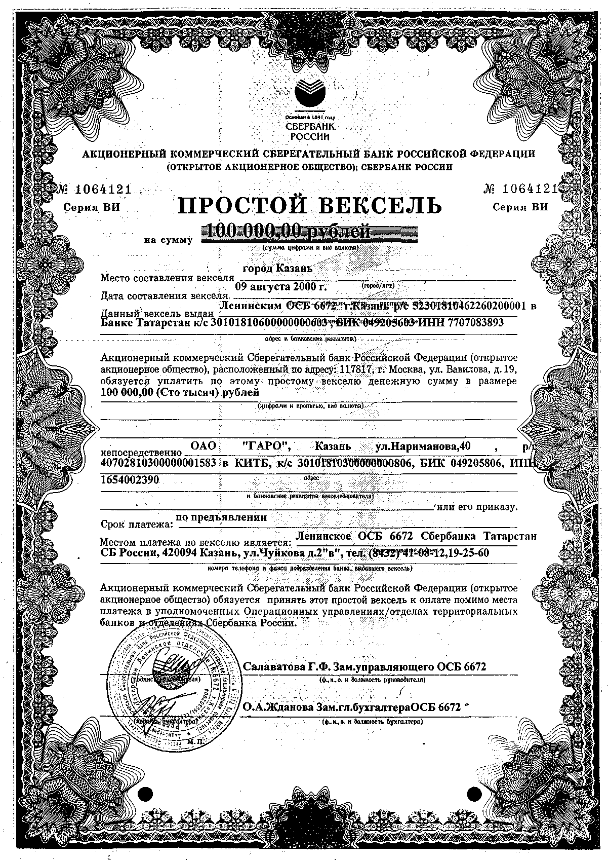 Вексель третьего лица, использованный ОАО "БСЗ" в расчетах с покупателем