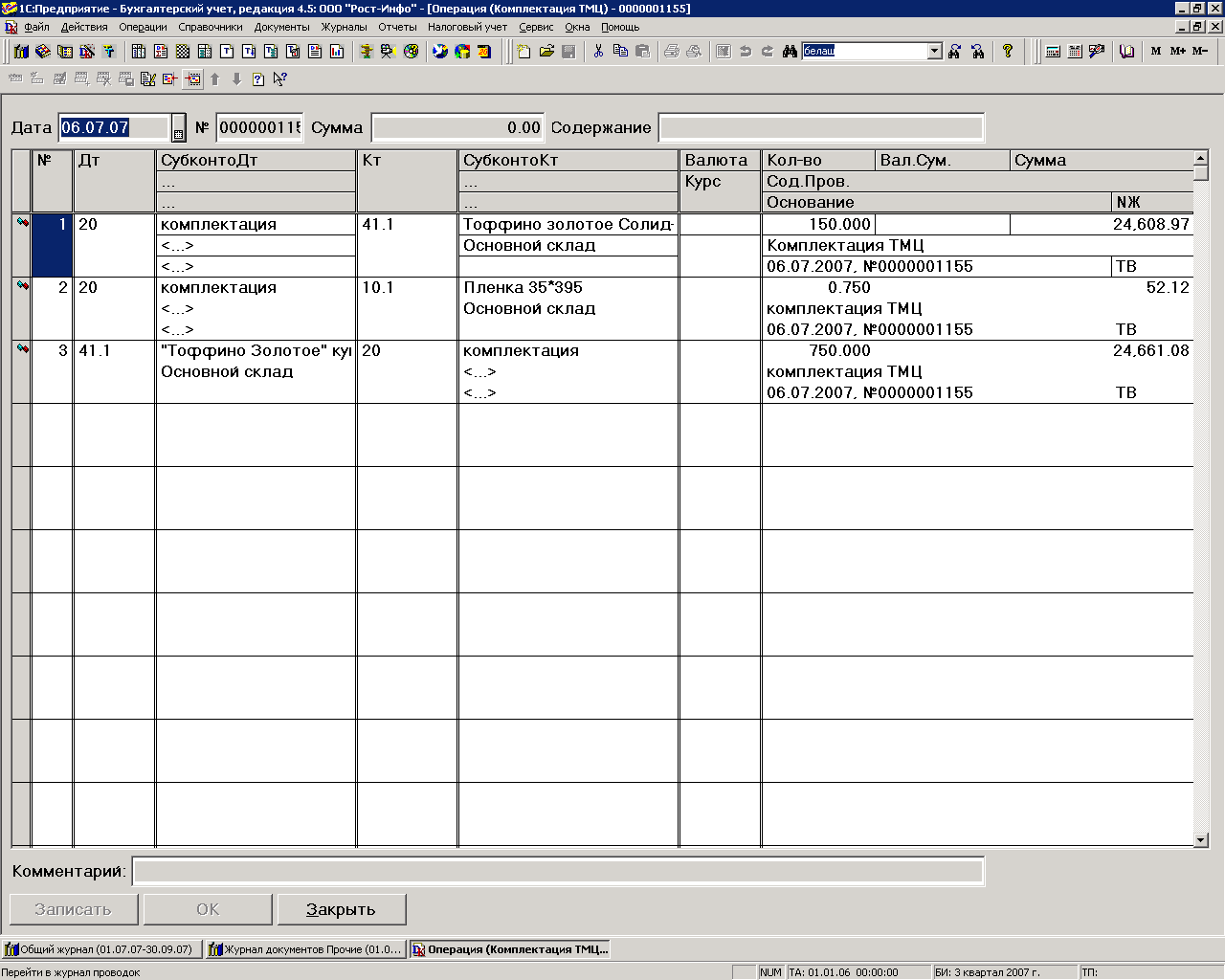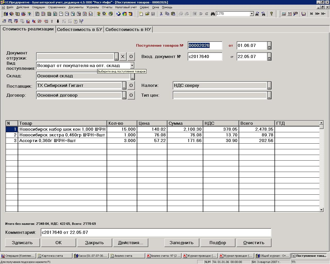 Особенностью приходования товаров в ООО "Тим-компани" является отражение операции в "1С-Торговля и склад" и только затем последующая выгрузка в конфигурацию "1С - Бухгалтерия".
