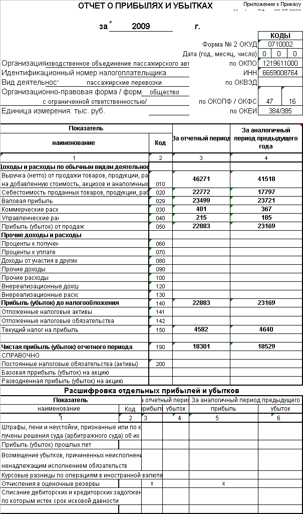 Таблица 12 - Аудит для целей бухгалтерского учета (период - 2009 год)