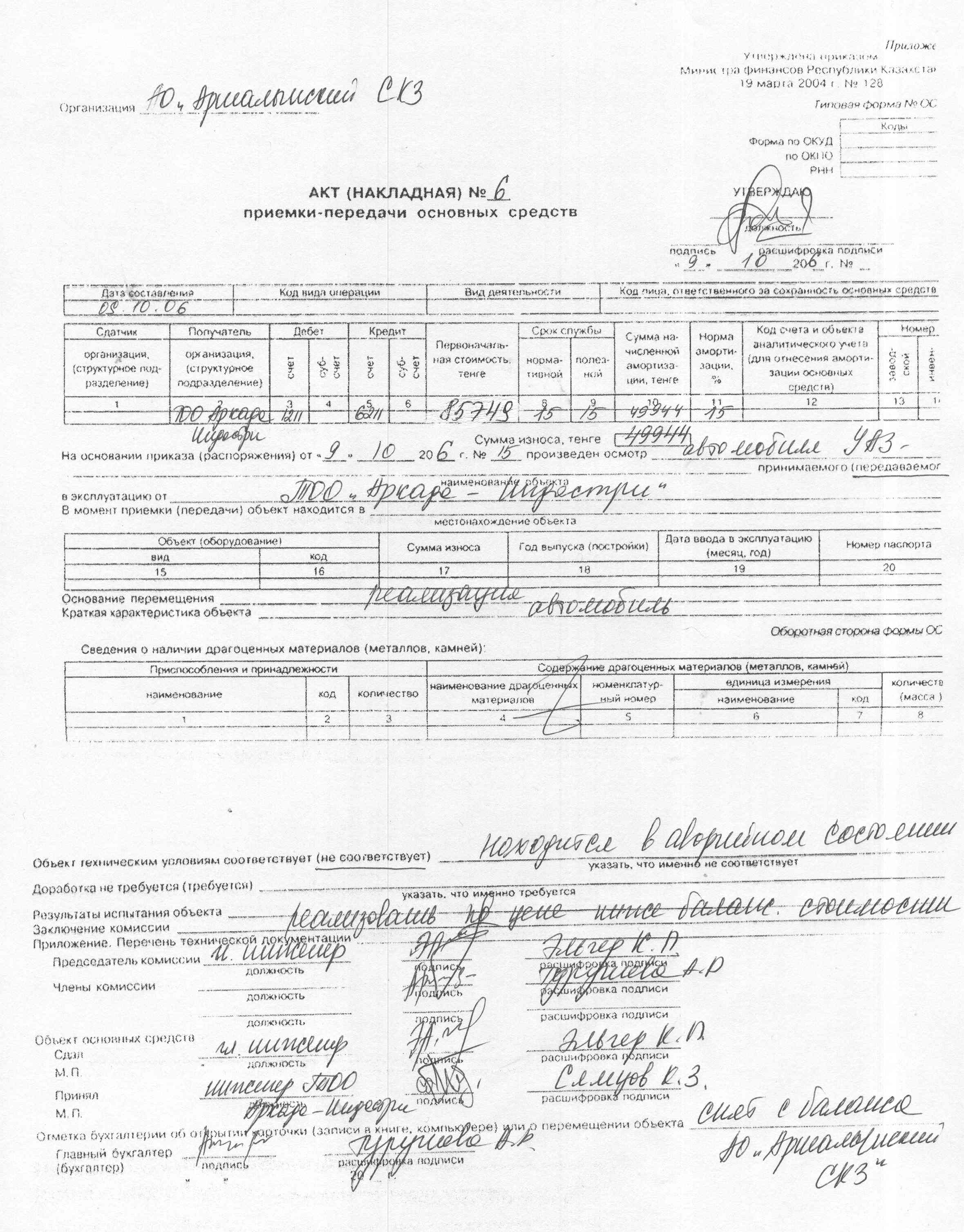 Проверка правильности оформления первичных документов по движению основных средств |