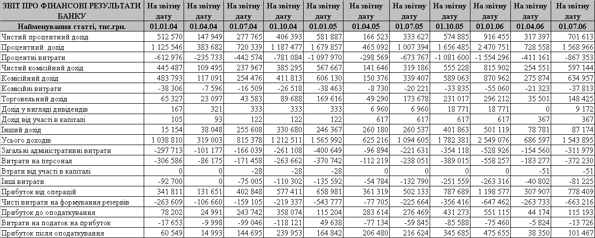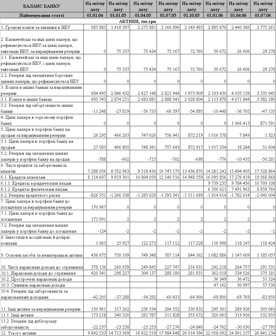 Информационно-методологическая база исследований дипломного проекта — отчетные документы АКБ «Приватбанк» за 2001 - 2006 года, информационные материалы Национального банка Украины, Всеукраинской банковской лиги.