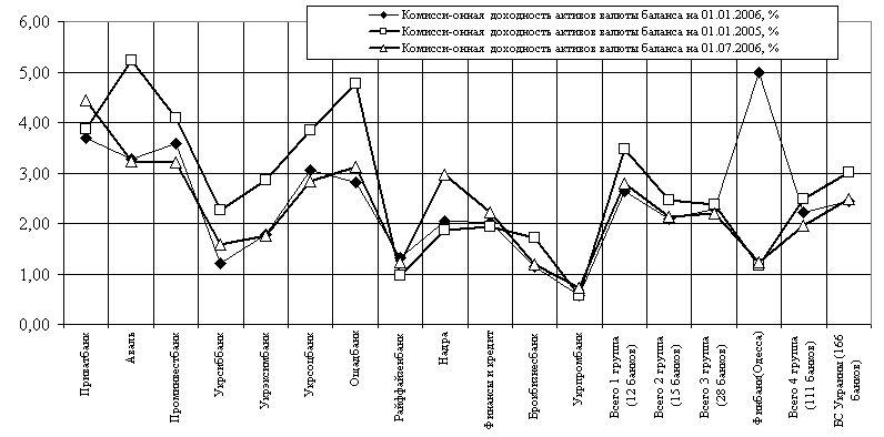 Динамика комиссионных доходов в банковской системе Украины в 2003 – 2006 годах