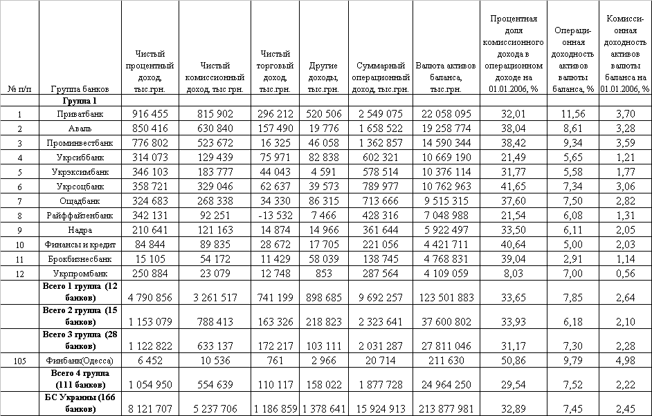 1.2 Классификация основных статей доходов коммерческих банков