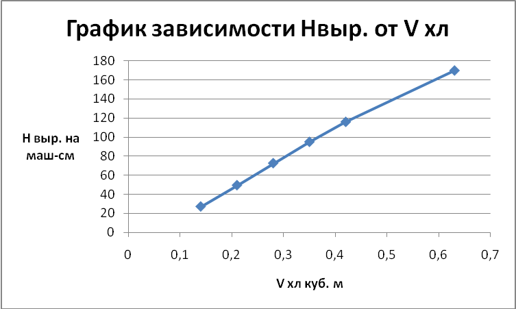 Заканчиваем построением графика зависимости норм выработки от объема хлыста.