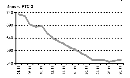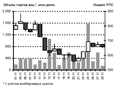 Рис. 7 Динамика индекса РТС на российском рынке акций по результатам ноябрьских торгов.