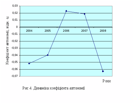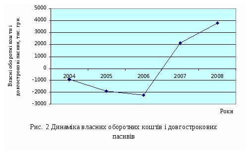 Як бачимо, сума власних обігових коштів підприємства є від’ємною, тобто обігові кошти взагалі не є власними, а залученими, за 2008 рік сума залучення зросла на 886,0 тис. грн.