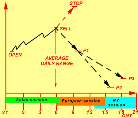 Техника открытия новой позиции - следующий самый важный элемент предварительного торгового планирования. Правила открытия новой позиции и входа в рынок являются многочисленными и требуют очень точной приверженности. Поскольку мы обсуждаем внутридневную торговлю, выбор точки входа представляет особенно важную и трудную задачу из-за ограниченного времени и места, которое не превышает ежедневный средний диапазон любого данного обменного курса. Мы должны всегда помнить и принимать во внимание тот факт, что в течение дня вся торговая деятельность отражает только "шум" рынка. Другими словами, на результат любой отдельной сделки очень влияют случайные движения рынка, и его хаотические колебания сопоставимы с ежедневным средним диапазоном. Поэтому тактика, которая может и должна быть применена к внутридневной торговле, может быть охарактеризована как техника “ударил и убежал”.