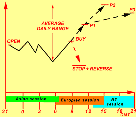 Исключения происходит в тех случаях, когда в течение азиатской сессии курс европейских валют достигает некоторого критического уровня, определение которого возможно при анализе долговременных Дневных, Недельных или Месячных графиков. В этих случаях необходимо реагировать на полученный сигнал, даже если такие ситуации случаются очень редко.