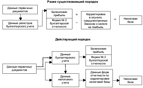 Рисунок 2. Схема изменения порядка определения величины налоговой базы по налогу на прибыль в связи с введением гл. 25 НК РФ