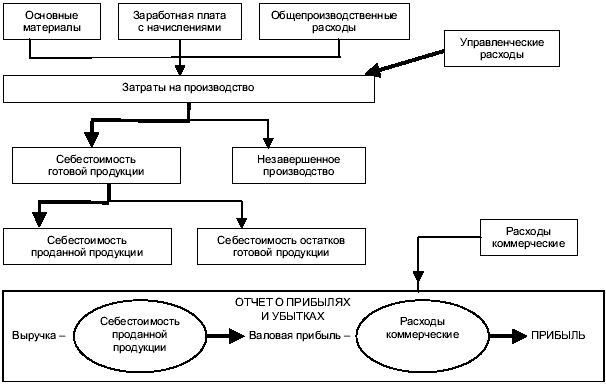 Рис. 4. Учет и калькулирование затрат по системе полной себестоимости («Абзорпшен-костинг») с отнесением расходов на управление к затратам на продукт