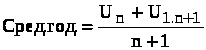 где U>n>> >– остаточная стоимость имущества на 1-ое число каждого месяца налогового (отчетного) периода; U>n>>+1 >– остаточная стоимость имущества на 1-ое число следующего за налоговым (отчетным) периодом месяца; n – количество месяцев в налоговом (отчетном) периоде.