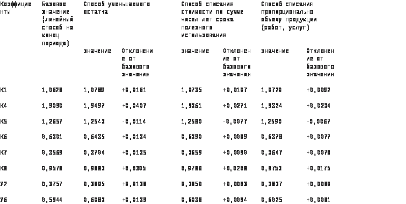 Изменения финансовых коэффициентов в зависимости от применяемых методов начисления амортизации основных средств