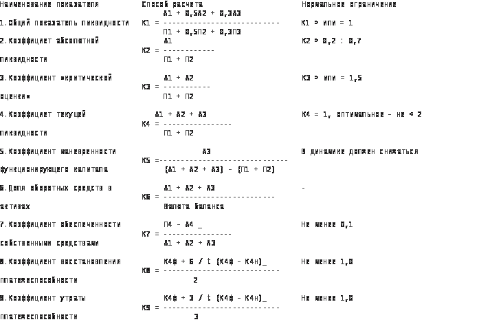 • с общепринятыми "нормами" для оценки степени риска и прогнозирования возможности банкротства;