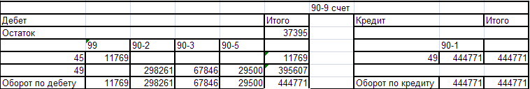 Оборотно - сальдовая ведомость по счёту 90-9