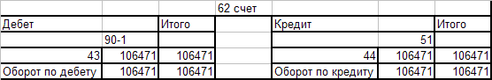 Оборотно - сальдовая ведомость по счёту 62