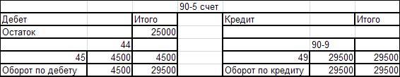 Оборотно - сальдовая ведомость по счёту 90-5